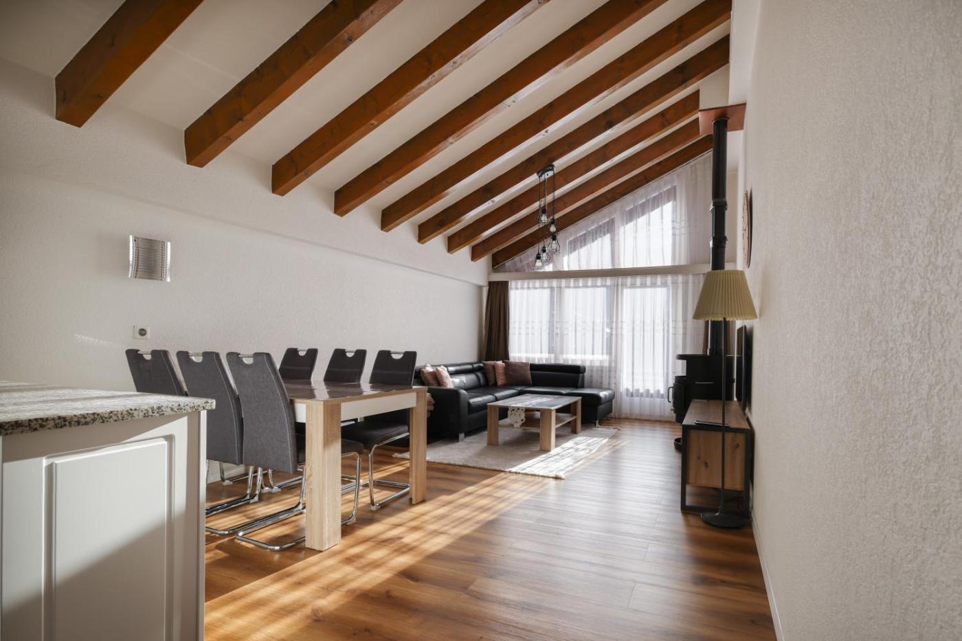 The spacious apartment with a balcony and mountain views features 1 bedroom, 2 living rooms, a flat-screen TV, an equipped kitchen with a dishwasher and an oven, and 1 bathroom with a bath. Towels and bed linen are featured in the apartment. There is also a seating area and a fireplace.